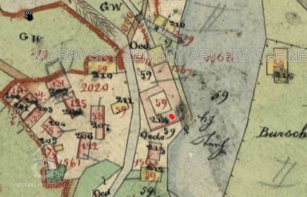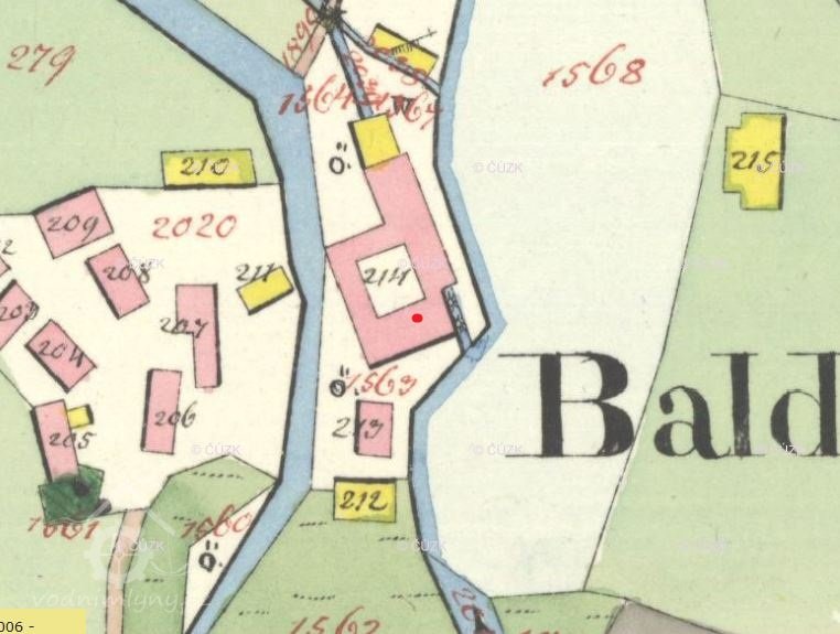 Mlýn dohledán na I. vojenském mapování.