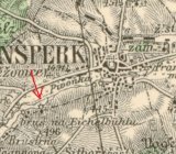 Je již na I. Vojenském mapování – josefském z let 1764-1768 a 1780-1783. Otisk a skica stabilního katastru z roku 1838: náhon, nespalná budova s další malou spalnou za náhonem, jedno kolo, větší spalná hospodářská budova, odtokový kanál, majitelem Wenzl Bök.