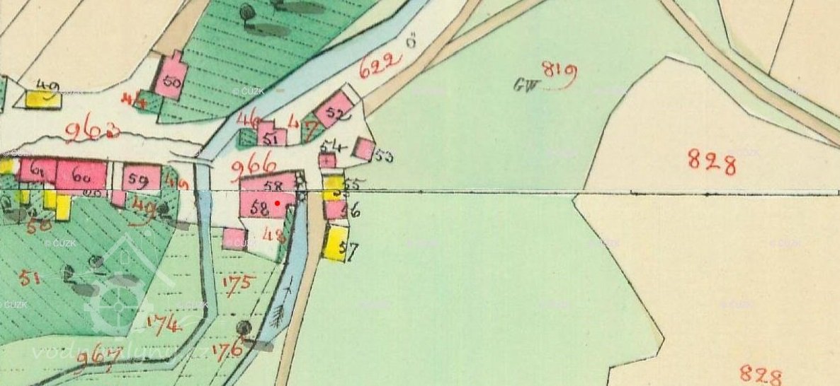 Mlýn na Starém potoce , stavení č.p.42 , patřící rodině Melzer a Rothmeier.