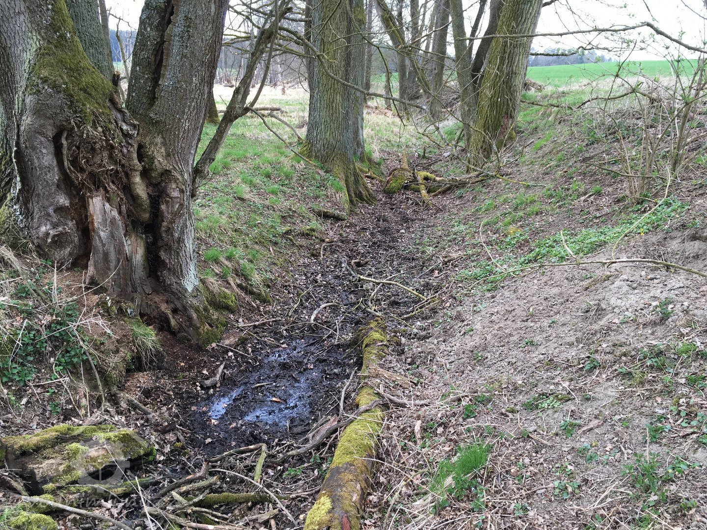náhon z potoka Kouby - stavidlo - vantroky - lednice - odtokový kanál