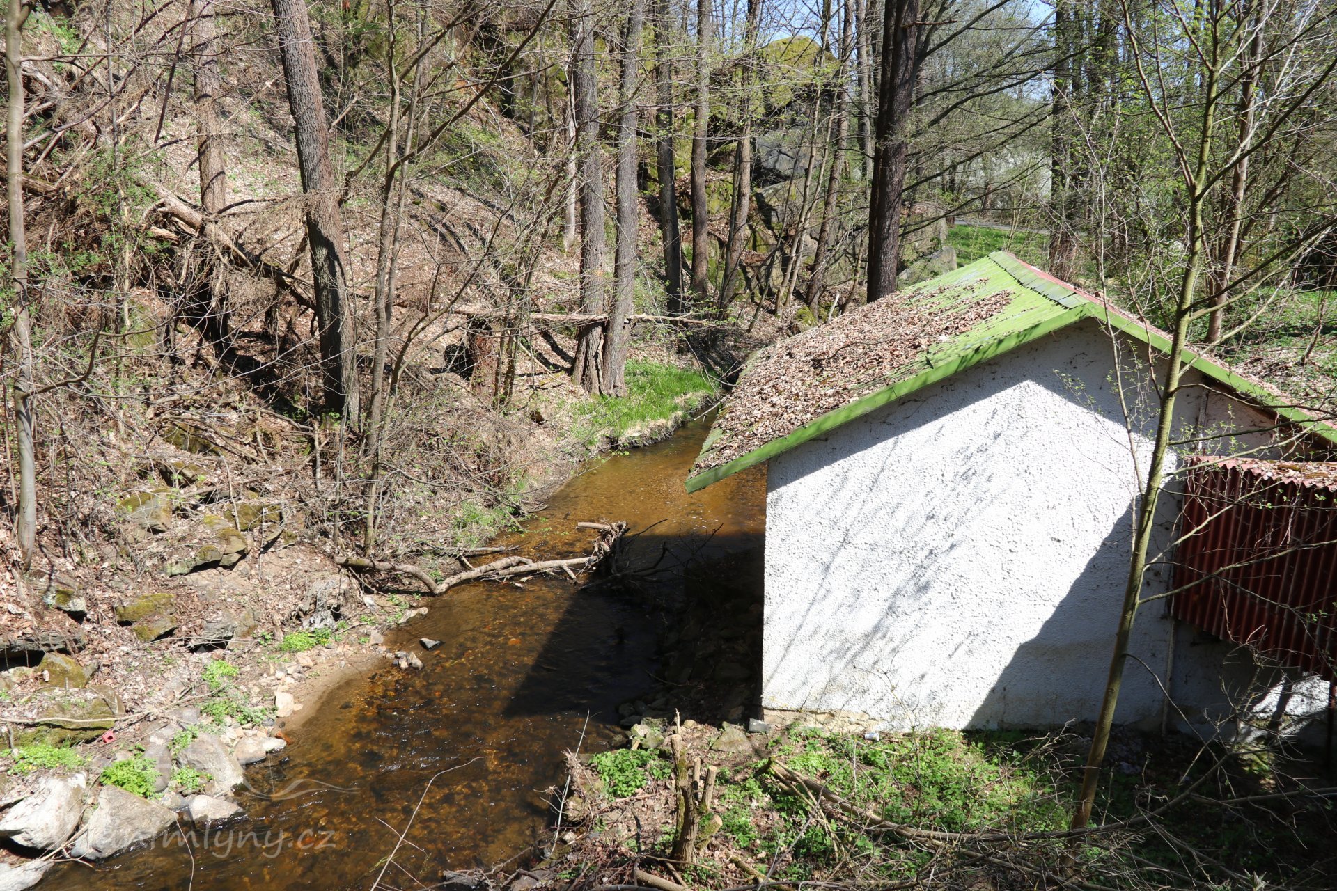 Mlýn se nacházel v propasti na Slatinném potoku. Byl postaven r. 1793. Jedno vodní kolo na vrchní vodu 10-12 HP. K mlýnu patřilo hospodářství 5,43 ha a pekárna. 1889 byl povodní zničen a nově postaven s turbinou.. Mlýn pracoval do odsunu mlynářské rodiny r. 1946.