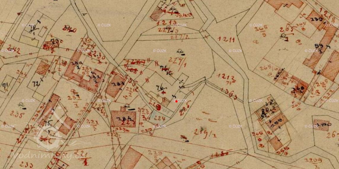 Popis1930: 1 kolo na svrchní vodu, hltnost 0,112 m3/s, spád 3,8 m, výkon 3,67 HP