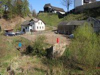 Ve skalnaté propasti, která obklopuje hrad na severu a západu, teče Slatinný potok na kterém staly 3 mlýny - obilný s pilou, další obilný a kostní. O něco dál stálá ještě drátovna.