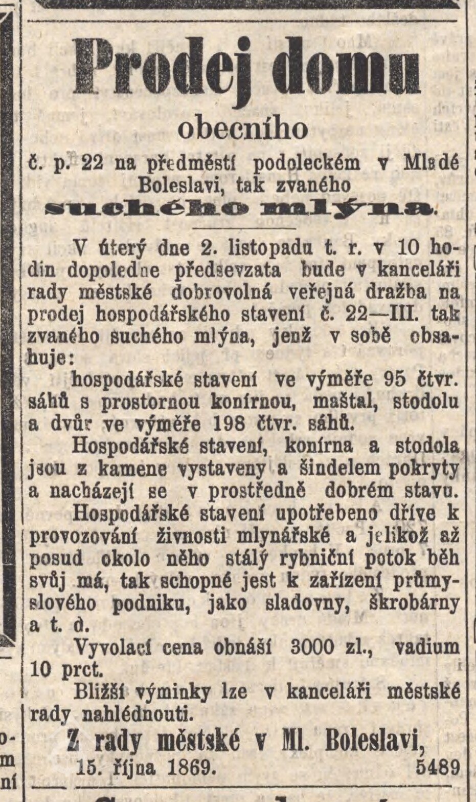 mlýn patřil obci boleslavské, byl emfyteuticky prodáván, ale zůstával dominikálním majetkem, držitel platil obci nájem