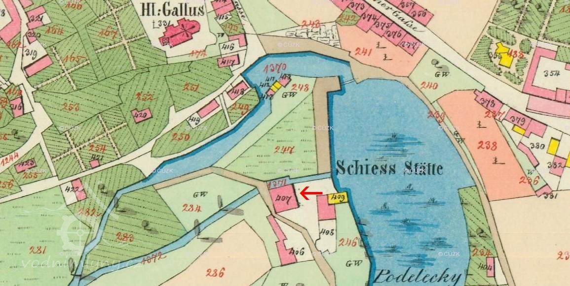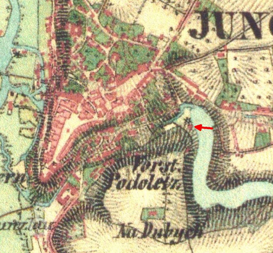 Na jeho místě předtím, do roku 1864, stávala jirchářská valcha.