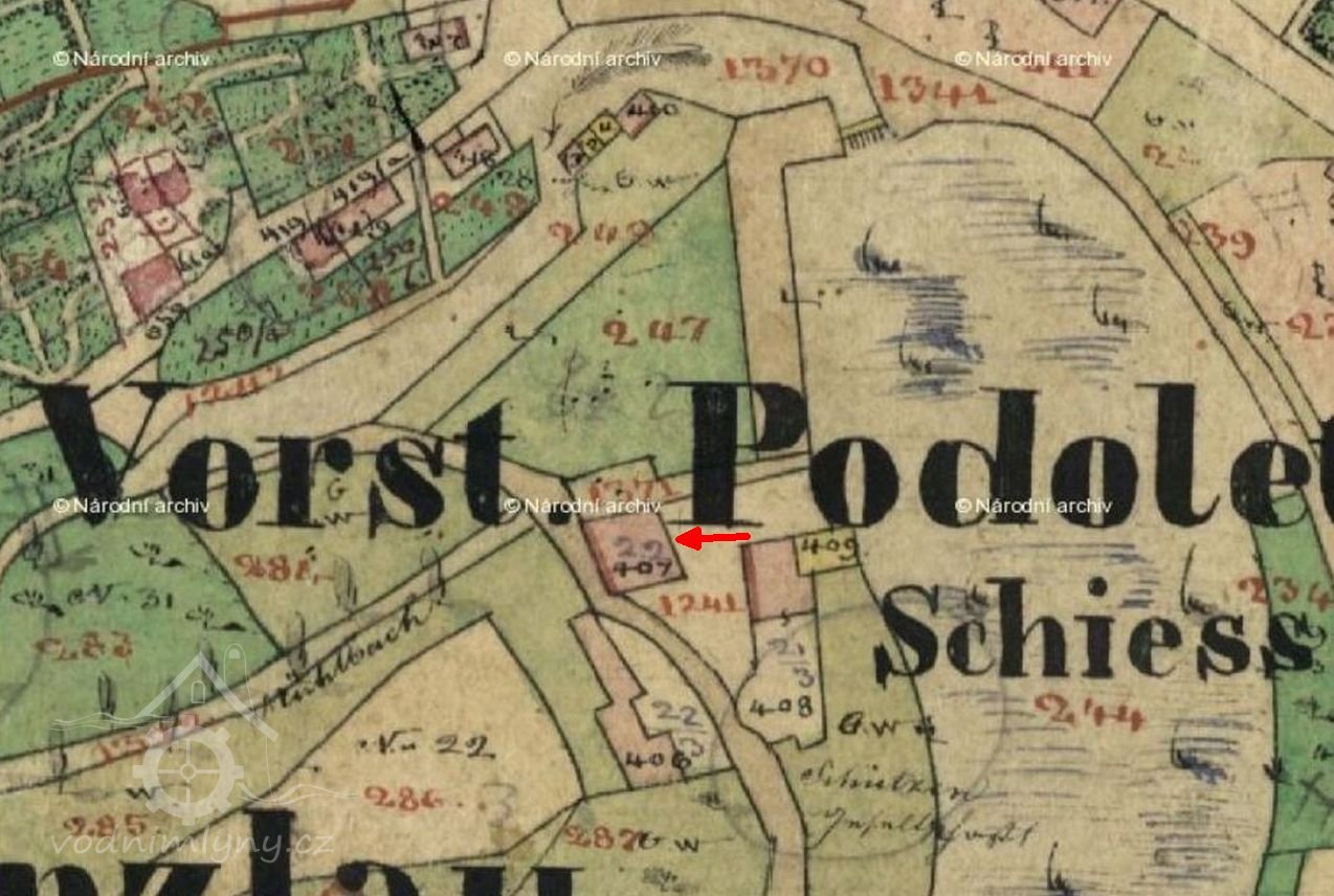 1549 poprvé zmíněn Suchý neboli Podolecký mlýn u rybníka pod městem