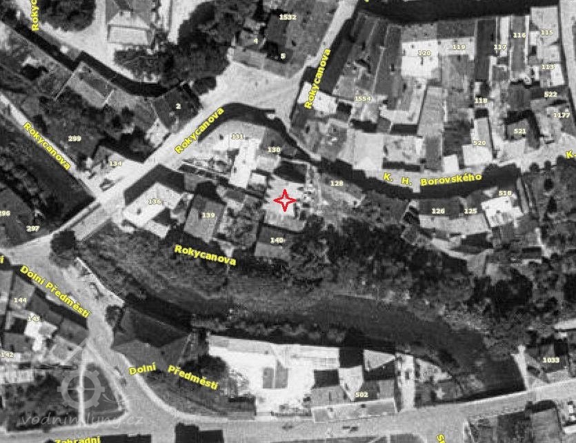 PopisV roce 1930 zde bylo jedno vodní kolo na spodní vodu, hltnost 0,74 m3/s, spád 1,2, výkon 4,6 HP.