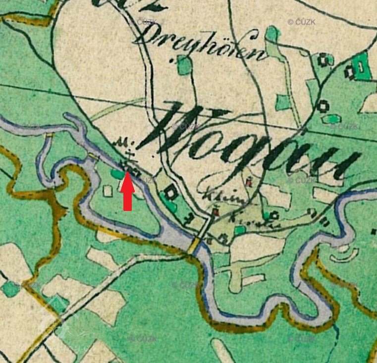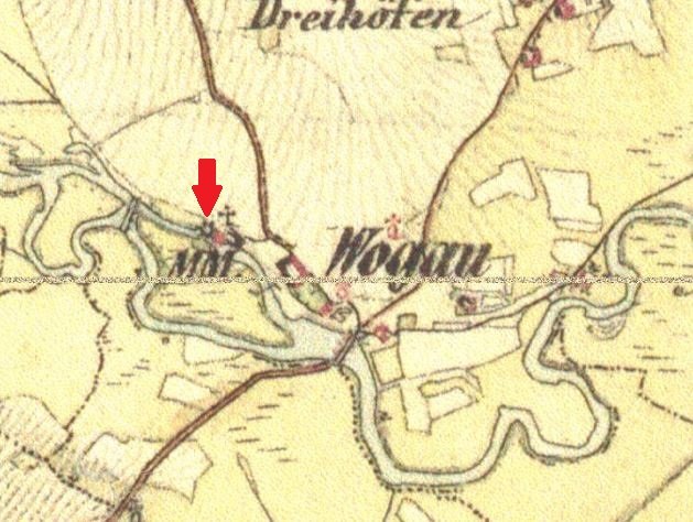 Mlýn patřil původně ke statku a zámku Wogau = Vokov.