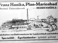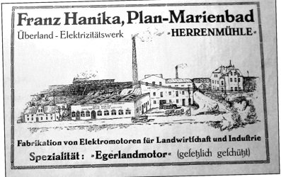 V předválečných letech pracovala ve firmě většina členů Hanikovy rodiny: Oswald byl technickým vedoucím, Franz provozním vedoucím, Rudolf obchodním vedoucím, Emilie fakturantkou. Dále zde pracovali Josef Hanika jako inkasista a Marian Hanika jako účetní. Kromě rodinných příslušníků zaměstnávala firma dalších 8 zaměstnanců. Do provozu bylo uvedeno soustrojí se dvěma Francisovými turbínami o výkonech 13 a 17,8 HP, které poháněly společný generátor o výkonu 75 kWh. Součástí obchodního názvu elektrárny Franz Hanika Plan-Marienbad byl i původní název mlýna Herrenmühle, ačkoliv s původním využitím mlýna již firma neměla nic společného.