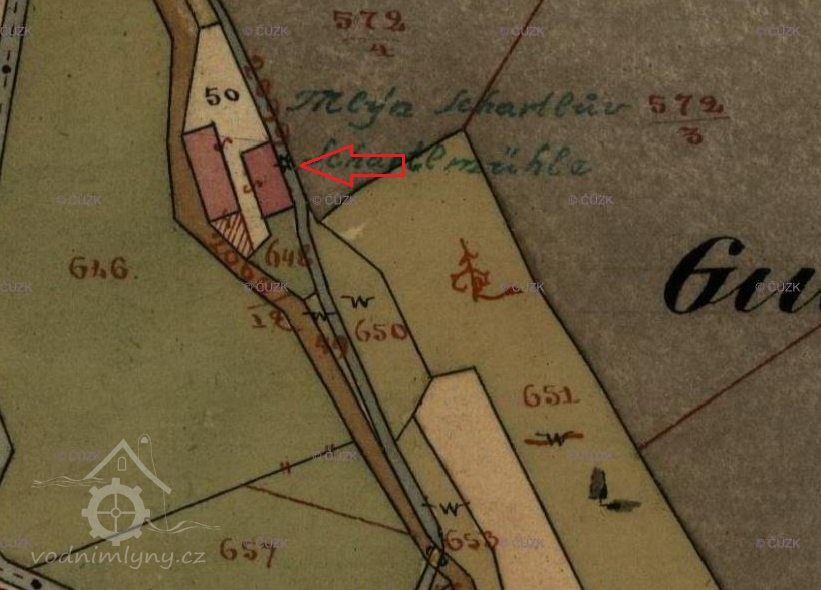 Dle zápisu v tereziánském katastru zde mlýn stál již v roce 1713, Kdy měl 2 vodní kola.