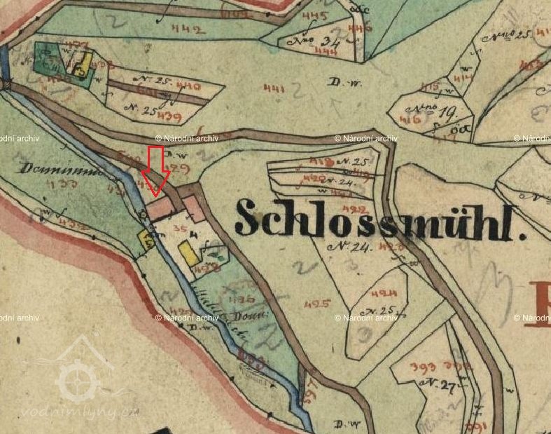 Ve fasi tereziánského katastru z 1. třetiny 18. století je uveden Zámecký mlýn se 3 koly a pilou na nestálé vodě. Mlýn patřil vrchnosti, mlynář zde byl v nájmu.
