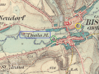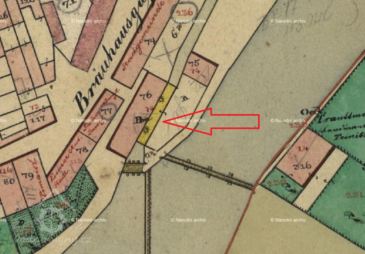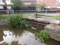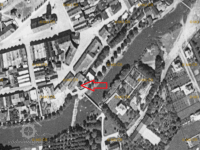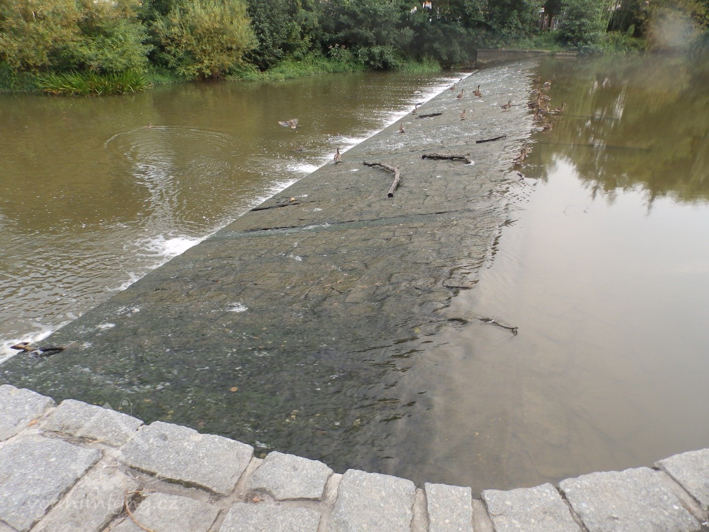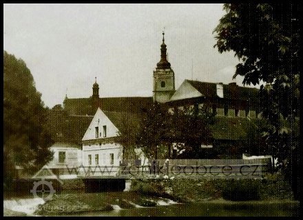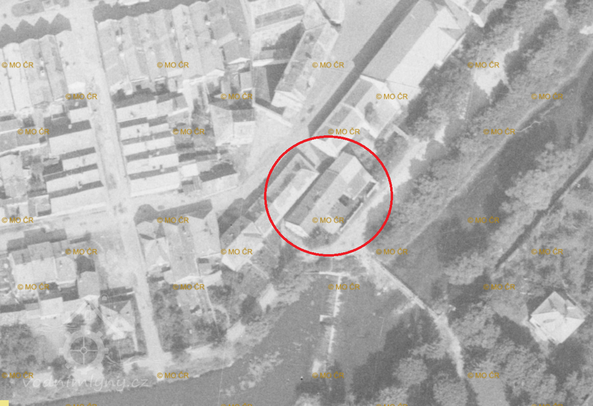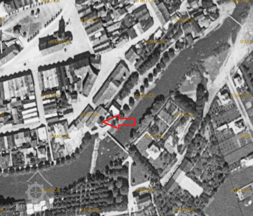 Mlýn pod náměstím, po II. světové válce zbořený, zachován jez a podzemní náhon.