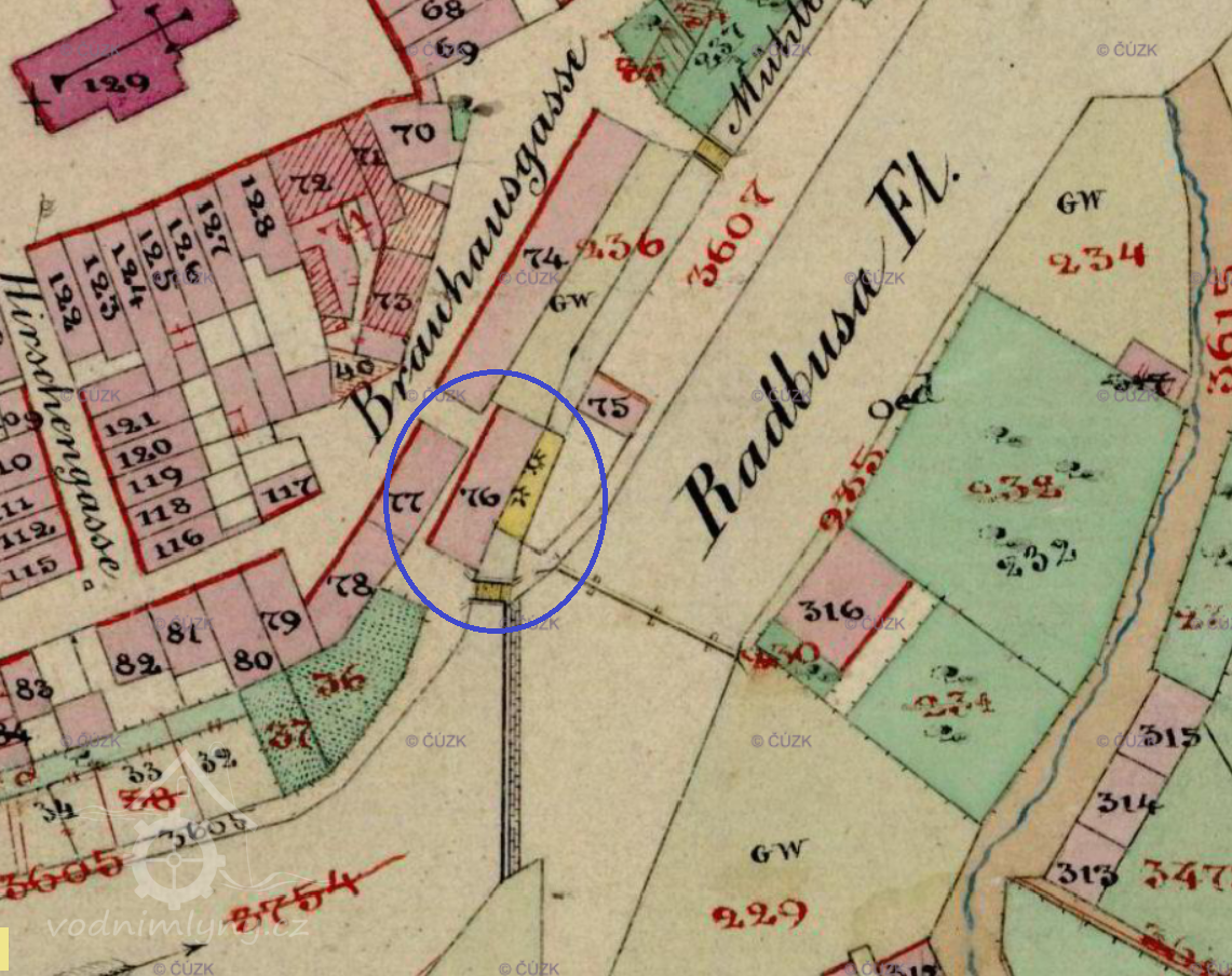 Popis1930: 1 kolo na spodní vodu, hltnost 0,994 m3/s, spád 0,7 m, výkon 3 HP