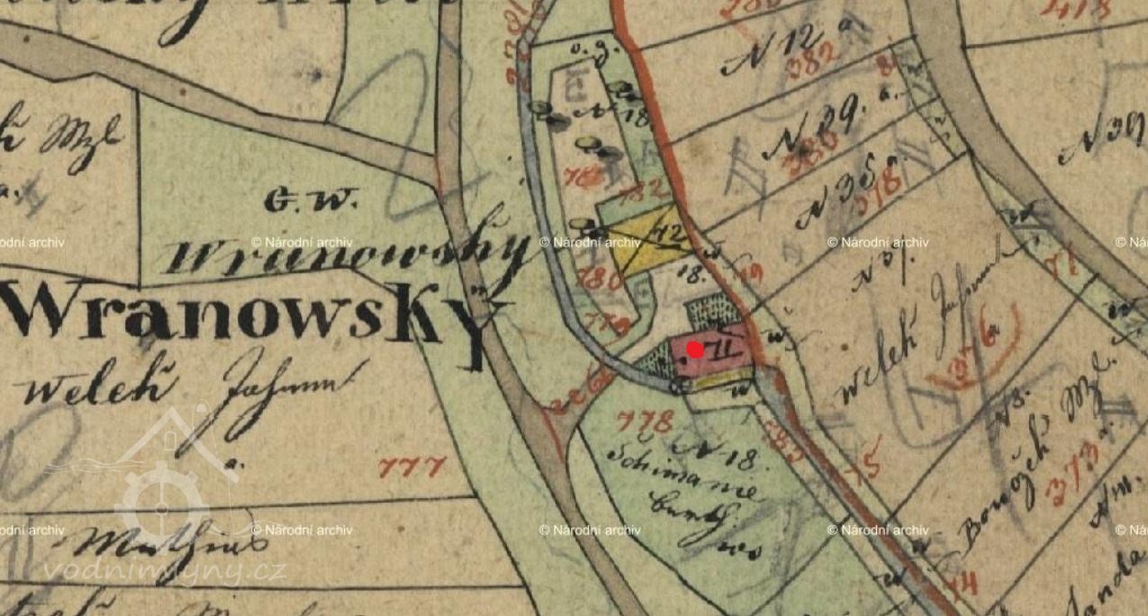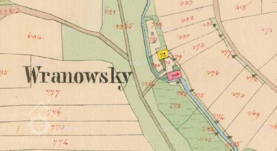 Mlýn zobrazován na mapách I. vojenského mapování.