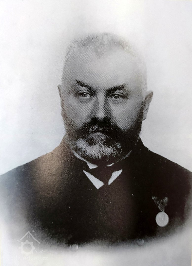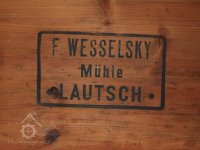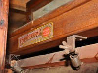 - loupačka průchodová, kombinovaná s kartáčovacím strojem, výrobce F. Holtzhausen a Co. Teplice, počátek 20. stol. - nápis výrobce, 2014, © David Veverka, (Prvky na obrázku: loupačka, značka výrobce na technologickém vybavení)