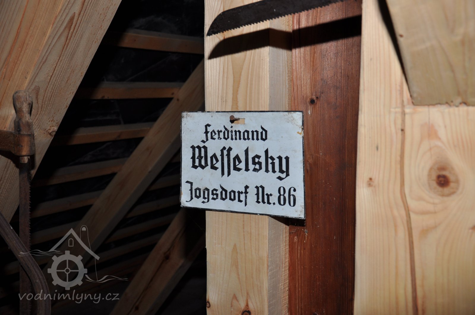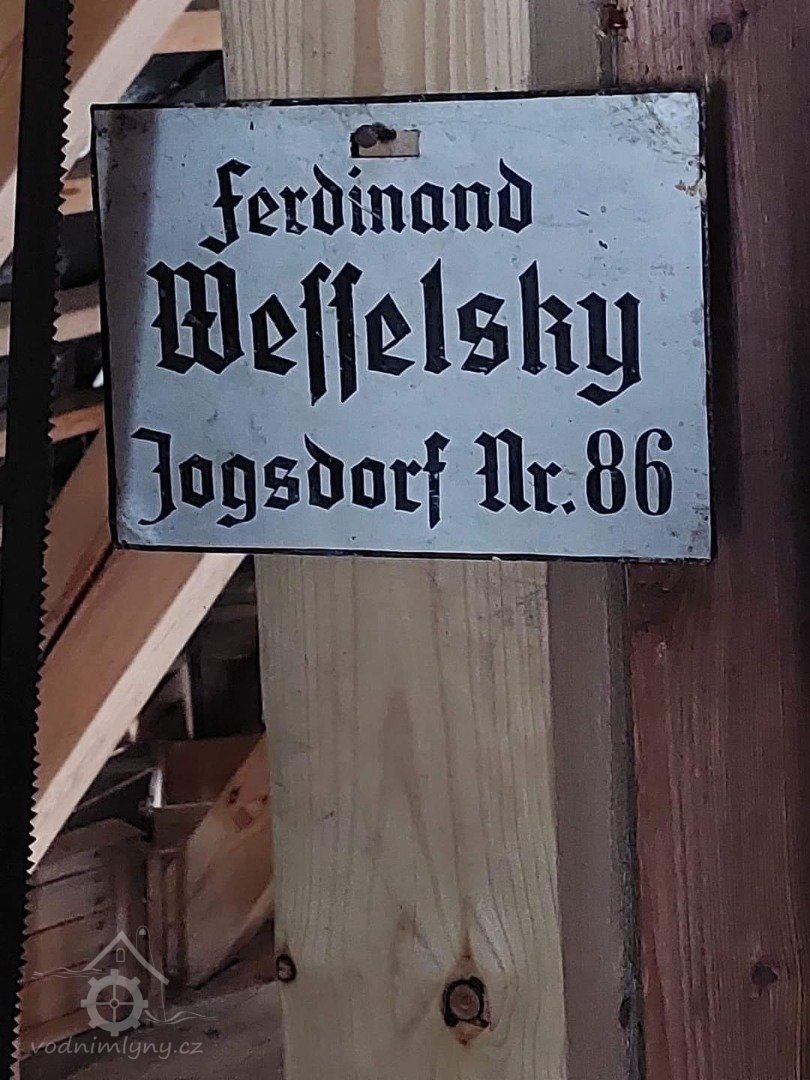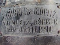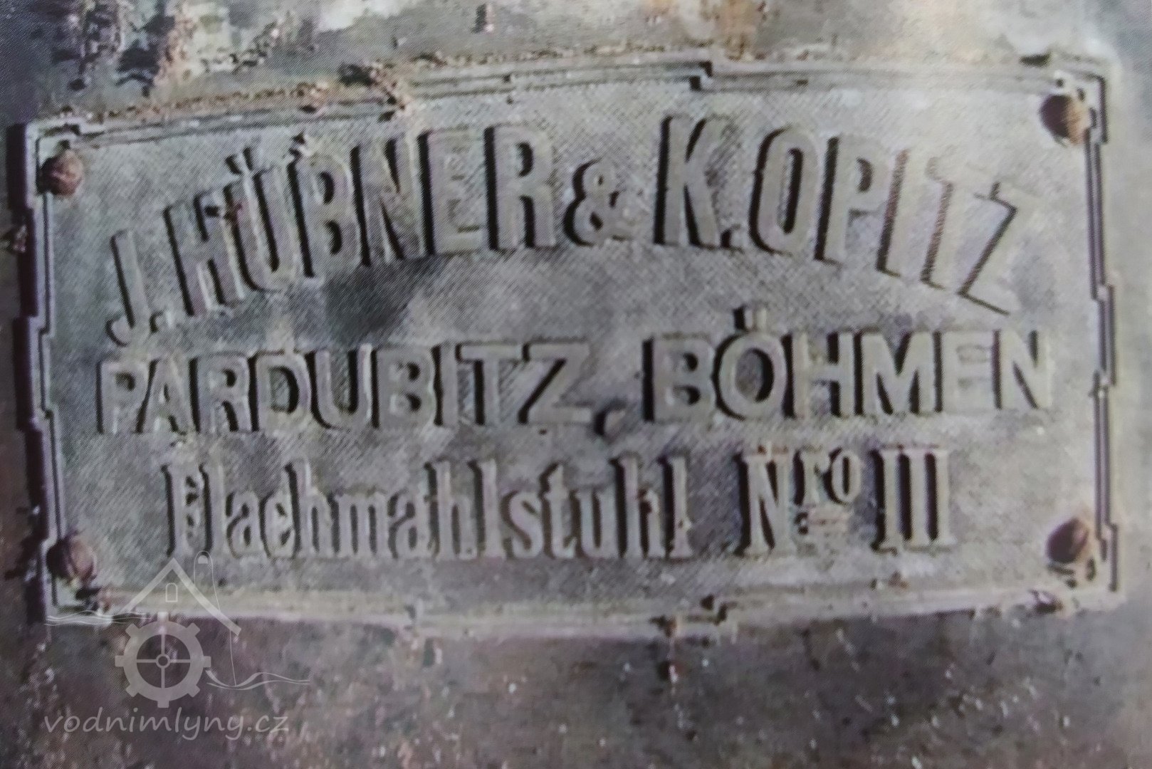 Štítek Hübner a Opitz, 2012, © Vodní mlýny na Novojičínsku, (Prvky na obrázku: značka výrobce na technologickém vybavení)