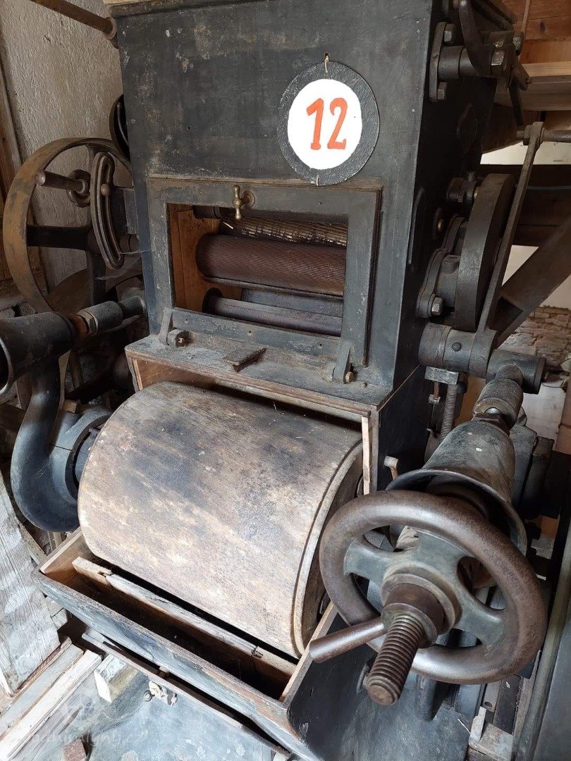 - loupačka průchodová, kombinovaná s kartáčovacím strojem, výrobce F. Holtzhausen a Co. Teplice, počátek 20. stol., 2014, © David Veverka, (Prvky na obrázku: loupačka, kartáčka)
