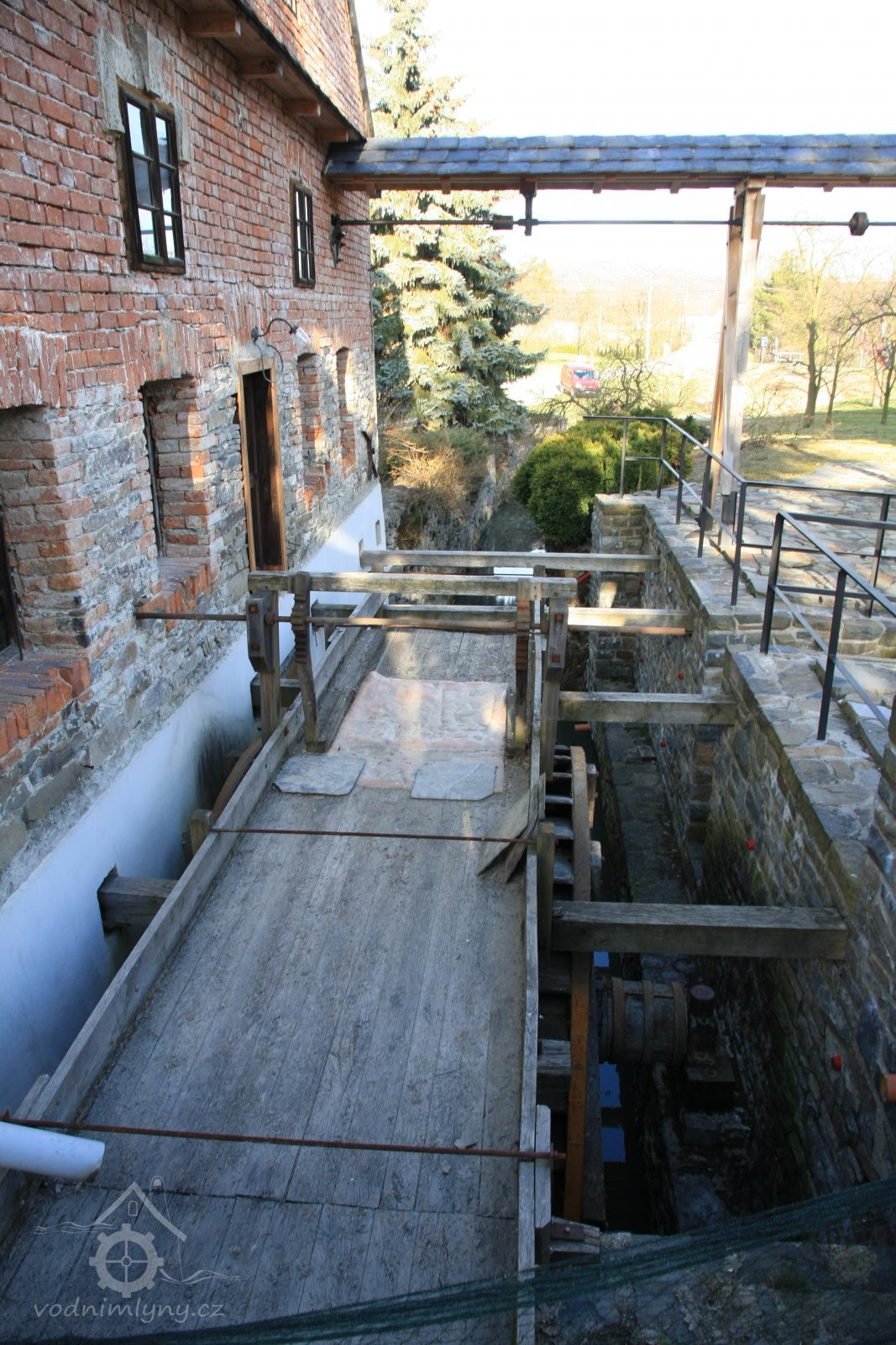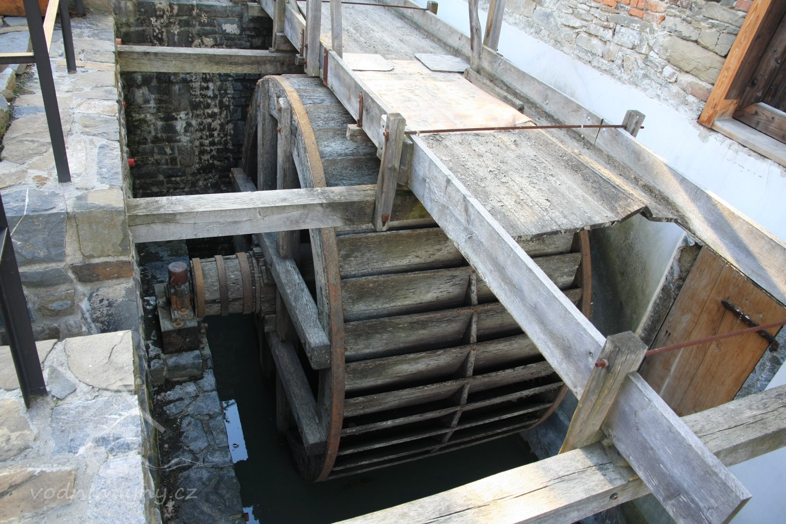 vodní kolo na vrchní vodu - pohled, 2014, © David Veverka, (Prvky na obrázku: Vodní kolo)