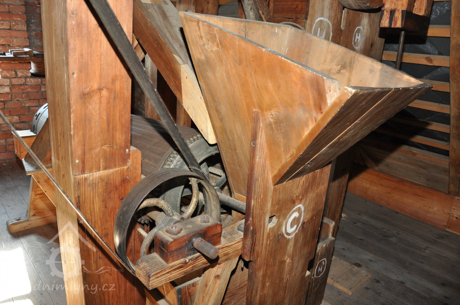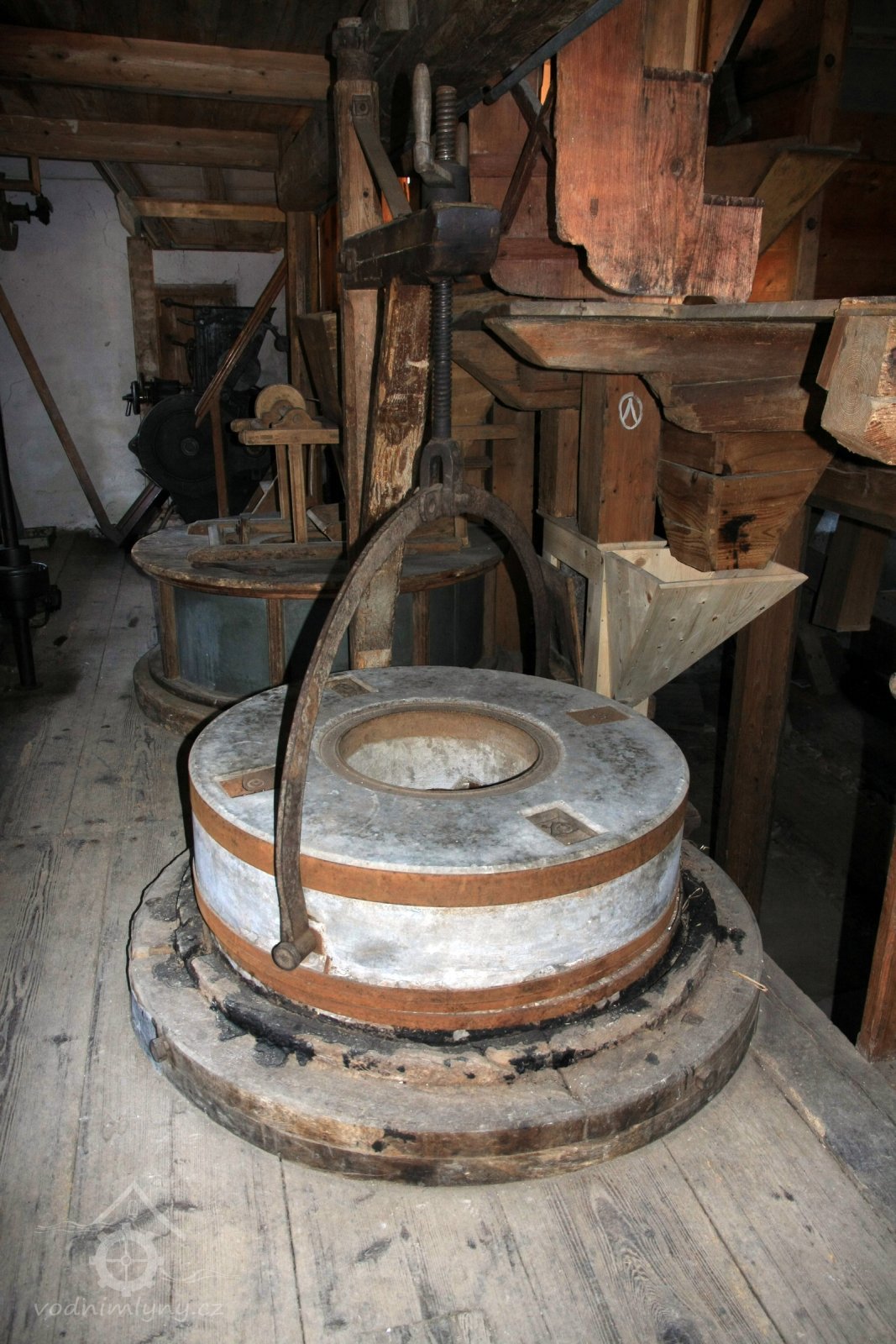 regulace (lehčení) mlecího kamenného složení, 2014, © David Veverka, (Prvky na obrázku: kamenné složení (šrotovací, mlecí))