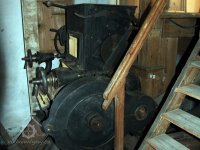 Transmise v koutě mlýna, 2013, © Šimek, (Prvky na obrázku: transmise, řemenice, převody)