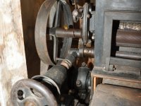 Převod z palečního kola na královskou hřídel, 2013, © Šimek, (Prvky na obrázku: transmise, řemenice, převody)