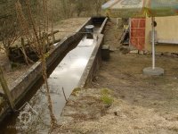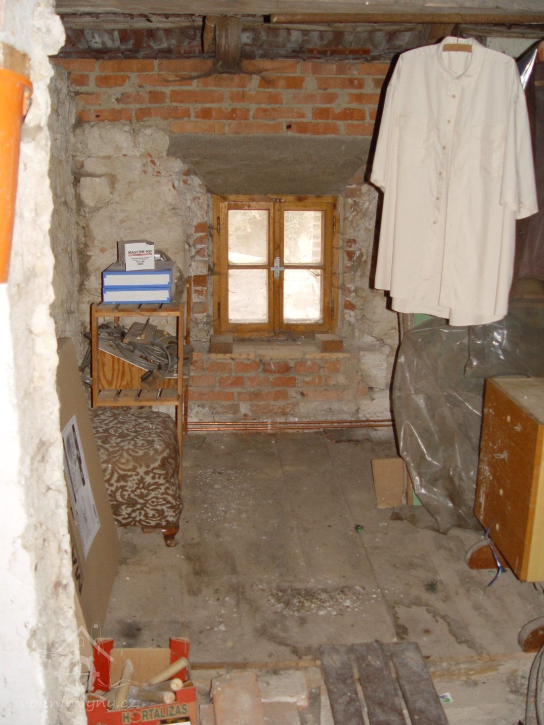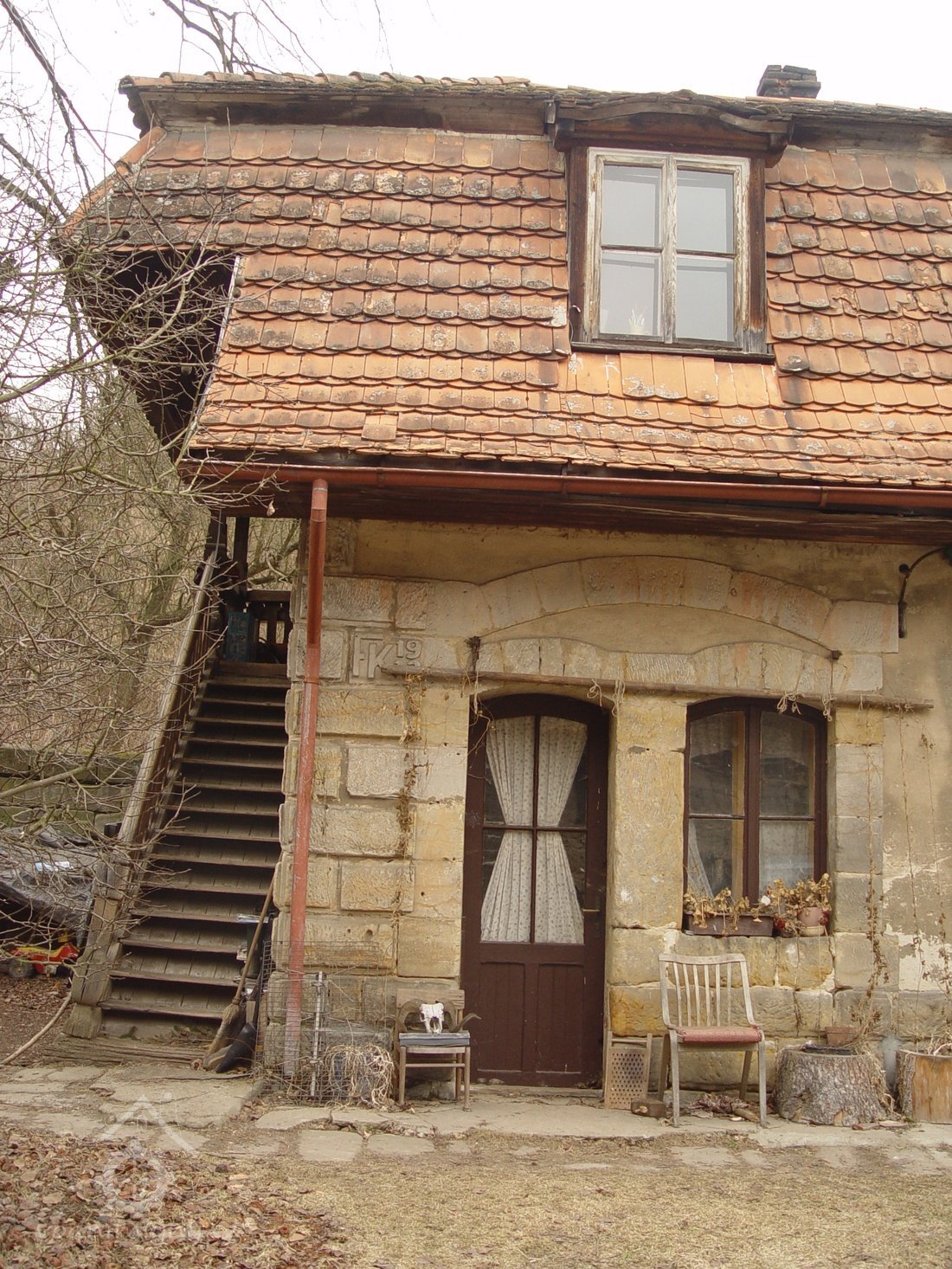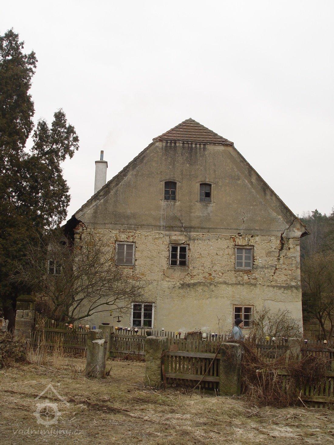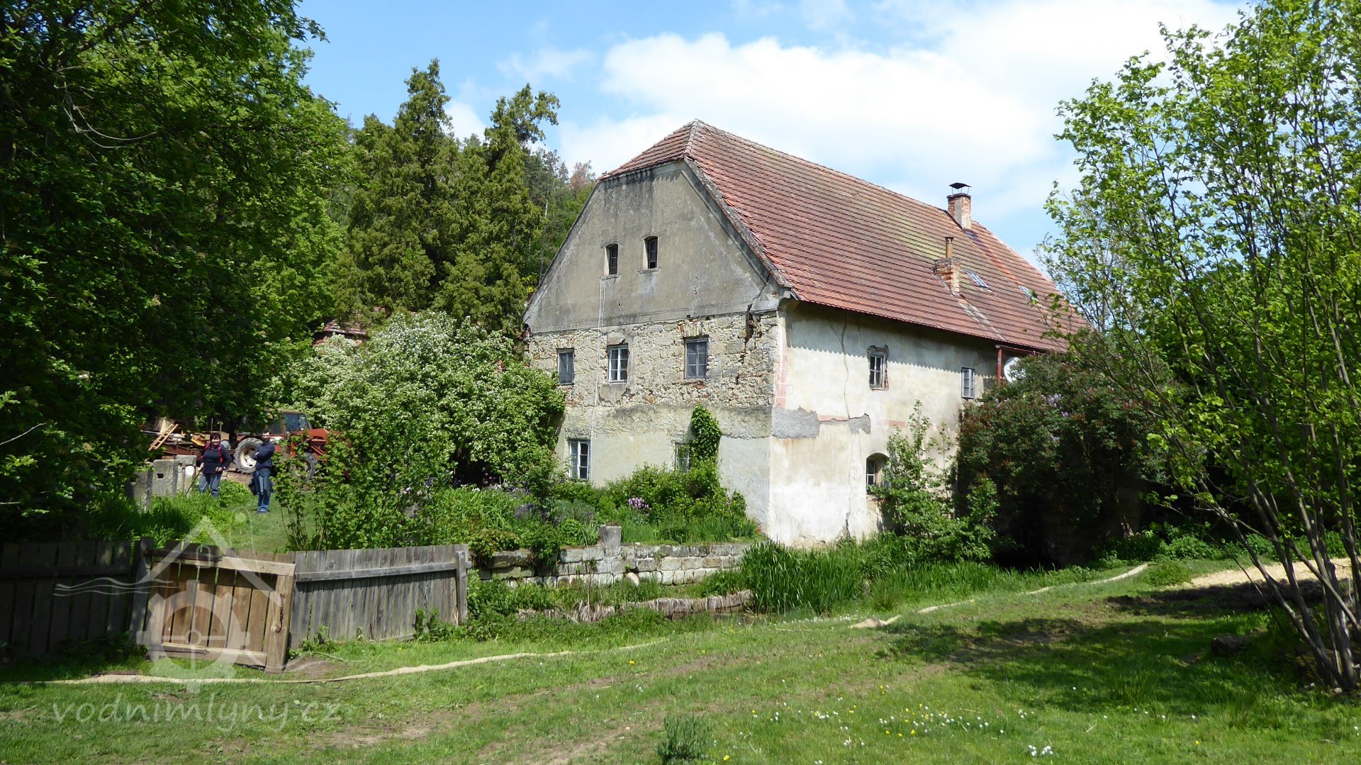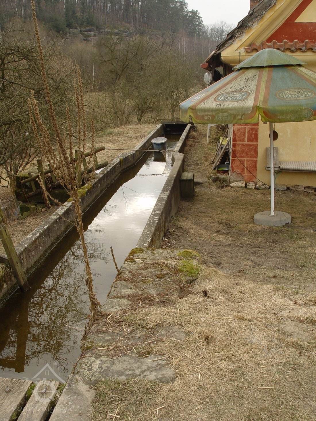 Zděný mlýn leží pod obnoveným rybníkem, jehož výpust má strouhu vysekanou ve skále. Na jejím dně je prosekané obdobné požírací koryto jako na Tuboži. Nad strouhou je vstup do dvou prostor, vysekaných v pískovcovém masivu. První je ve výškové úrovni vstupu, do druhé se sestupuje z první po sedmi schodech. Ve vstupu jsou patrné stopy po zárubních a uzavírání objektu. Jedná se o komoru a níže umístěný sklep, přístupné z protější strany strouhy po dřevěné lávce. Jejich zdánlivě neobvyklé umístění v situaci staveb mlýna je vzhledem k užitému materiálu právě typické, k zahloubení byla využita usedlosti nejbližší pískovcová skála. Způsob práce v lomové stěně i při vysekání objektu odkazuje do pokročilého novověku.