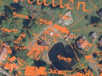 Na leteckém snímku z roku 1947 i 1950 jsou vidět obvodové zdi bez střechy, pila je ve stejném stavu.