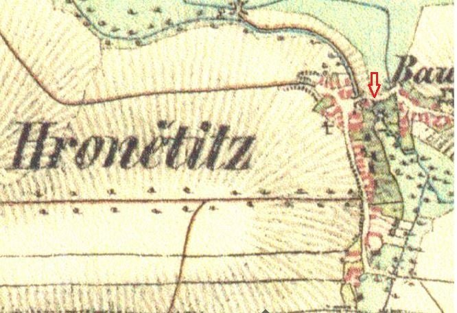 Mlýn však musel existovat již dříve. V kostomlatské kronice je zápis k 20. květnu 1678, kdy byl oddán Jakub, mlynářský v Hroněticích s Rosínou Řícelovou. (MH)