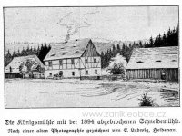 Pokud by se mlýn zachoval do dnešních dob,oslavovali bychom 431 let jeho existence.Doby a poměry se ale měnily a s ním i osud tohoto Královského mlýna.Zpočátku to byla pila poháněná vodním kolem,potom sídlo správce lesa a na počátku tohoto století oblíbená restaurace pro turisty,které sem dovedla modře značená stezka.