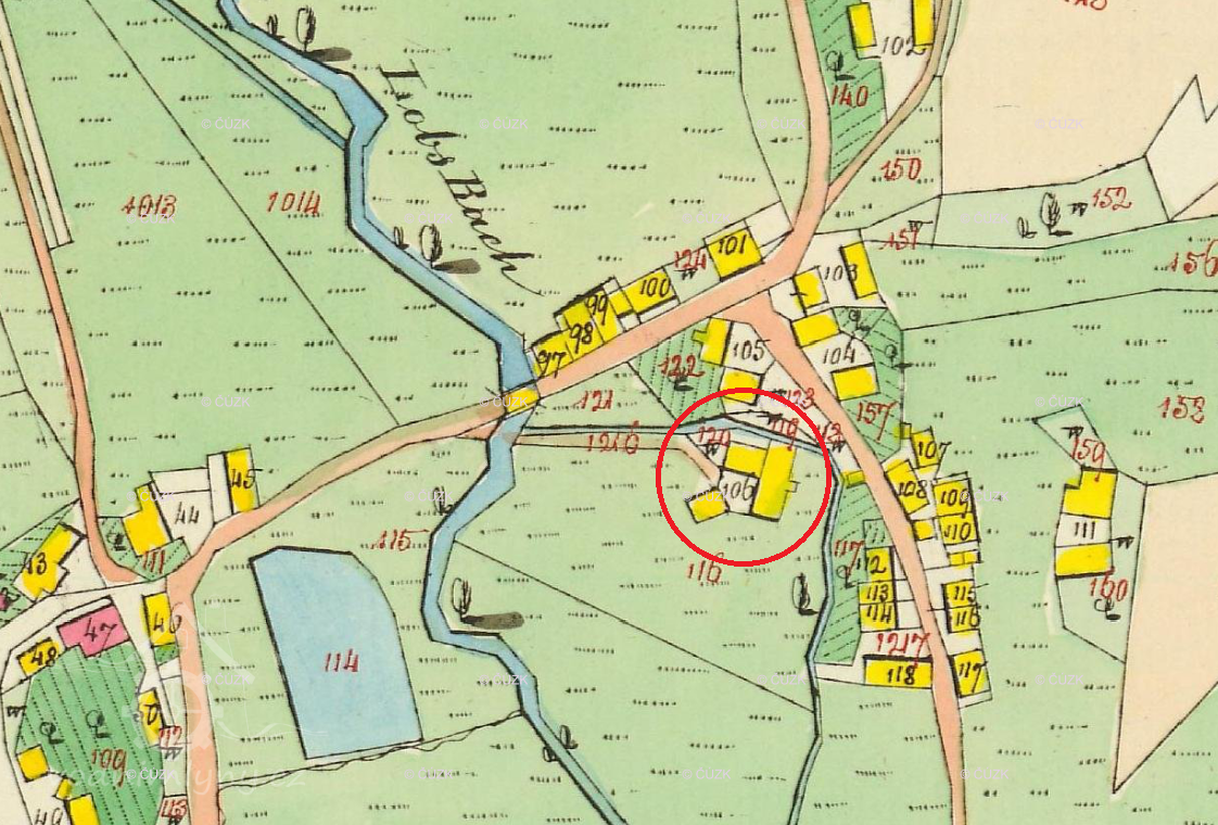 1825-1857 Matěj Lössl, syn sedláka Tomáše Lössla z Lískové u Sokolova, m. Marie Anna (17.9.1807-10.5.1859), dc. mlynáře Cyriaka Wilflinga z Büchlova mlýna čp. 76