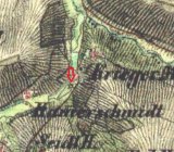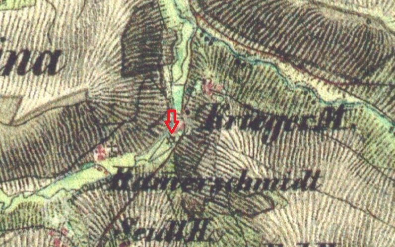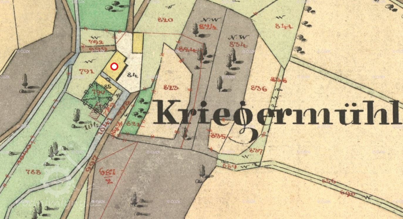 Mlýn dohledán na mapách I. vojenského mapování.