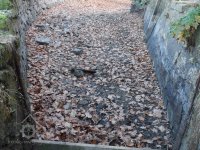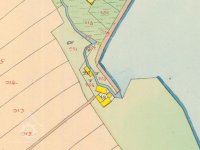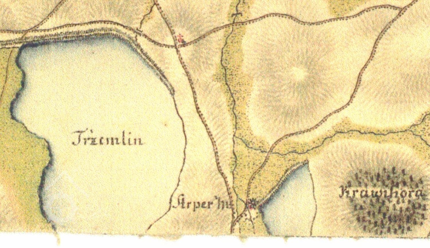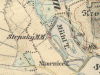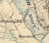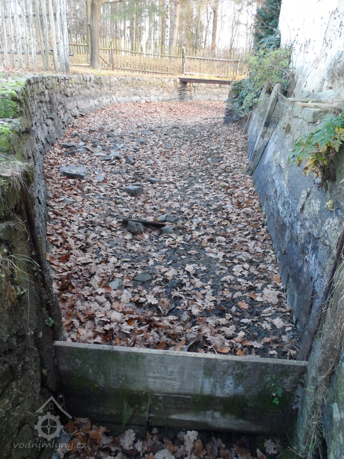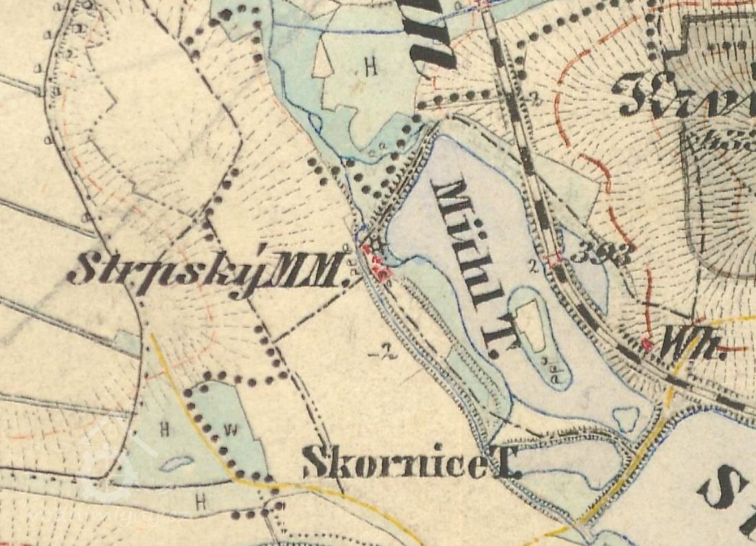 2. Mlýn z jednoho složení na spodní vodu béře vodu z mlýnského rybníka u Strpy. Šířka stoky hořejším jakož i splavu obnáší 2°, normální cejch,jak z opisu přiloženého vysvítá jest práh splavu, přebývající vody patří mlynáři. Voda nechá se vydržeti, co hráze stačí, ale obyčejně stávala 18“ za stavidlem, šířka a výška stavidla obnáší 3´, šířka kola či lopatek obnáší 30“, průřez kola obnáší 2° a 2´ . Šířka stoky dolejší pokud se na mé půdě nalézá obnáší 1°a 3´ - kdežto sotva do sedlské půdy padá již sotva 3´ obnáší; dle doznání starých hospodářů má být stoka ta až k řece 1 ½ ° široká a řádně čištěna, kdo by ji ale čistiti měl nemohu se dopíditi, pročež se osměluji c.k. okresní hejtmanství prositi kde bych práva ta hledati měl, co se týče čištění stoky dolejší a rozdělení vody u Záblatí na stoce hořejší.