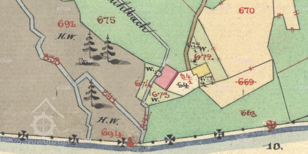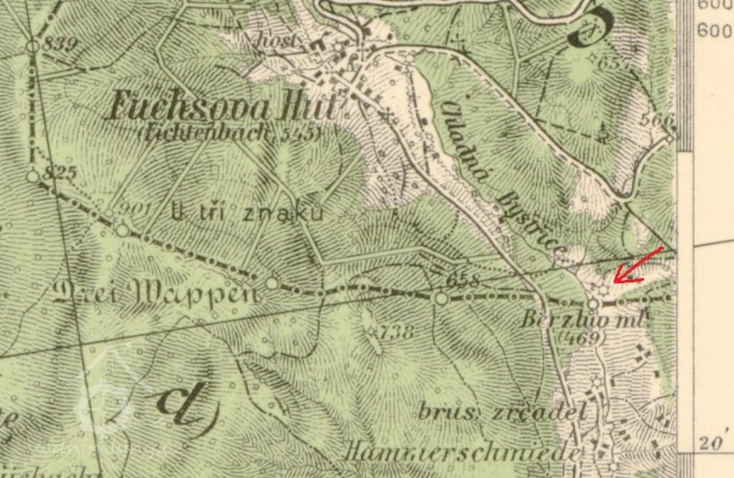 Na III. vojenském mapování - Františko-josefském 1877-1880 jako Berzlův mlýn.