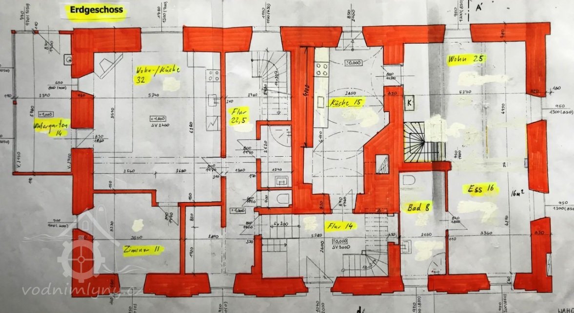 mlýnice a dům pod jednou střechou, avšak dispozičně oddělené
