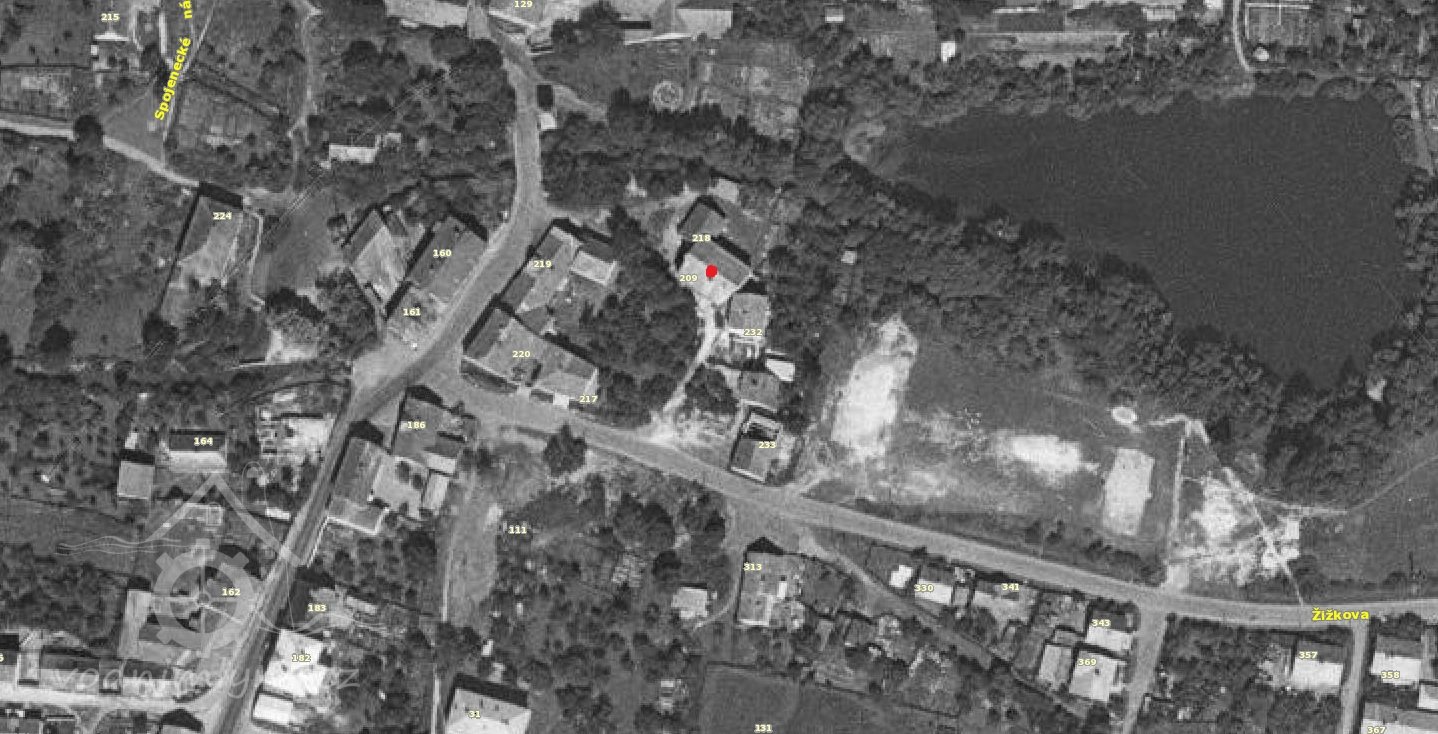 1964 – podle nepříliš ostrého leteckého snímku zřejmě ještě stojí.