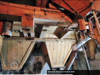 Krov hambálkový se stojatými stolicemi. Dřevěné prvky již částečně řezané na katru, spojované stále na dřevěné kolíky. Mlecí soustava byla do stávajícího prostoru krovu zasazována evidentně druhotně, pro jednotlivé převody s řemenicemi i strojní mechanismy zde nebylo příliš místa.