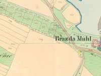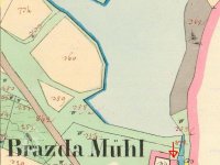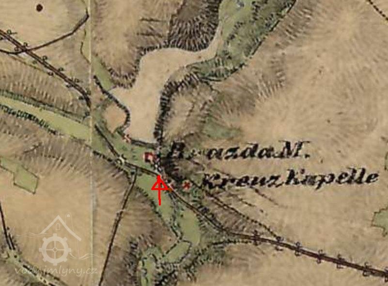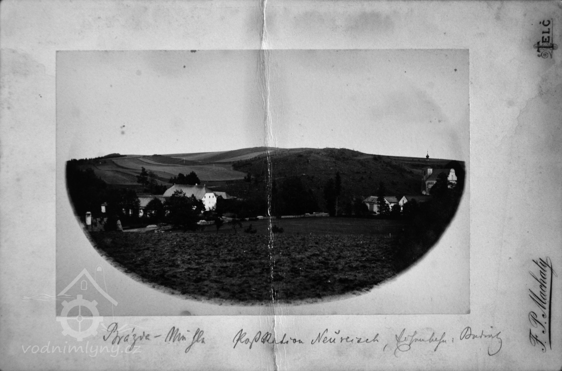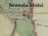 Mohutný patrový objekt s erbem ve štítě a dalšími hospodářskými budovami a pilou. Nad mlýnem je Brázdův rybník. Mlýn byl postaven kolem roku 1700. V současnosti se v mlýně nemele, je zde v provozu pouze pila. Mlýn je trvale obydlen.