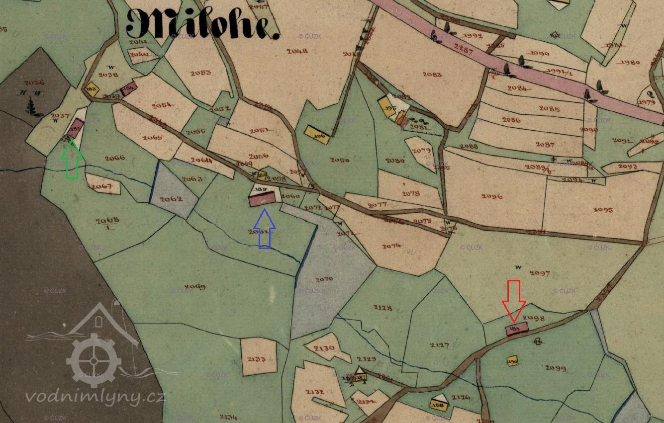 Popis1930 – 1 vodní kolo na vrchní vodu, hltnost 0,06 m3/s, spád 5,1 m, výkon 2,6 HP