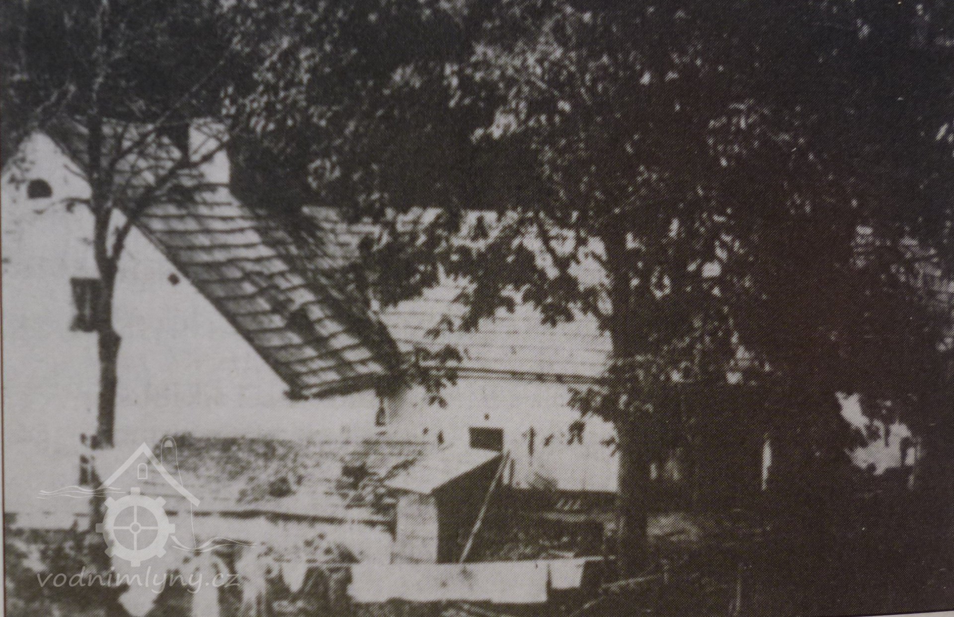 Na leteckém snímku z roku 1950 jsou vidět budovy mlýna ještě včetně střechy.