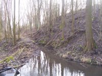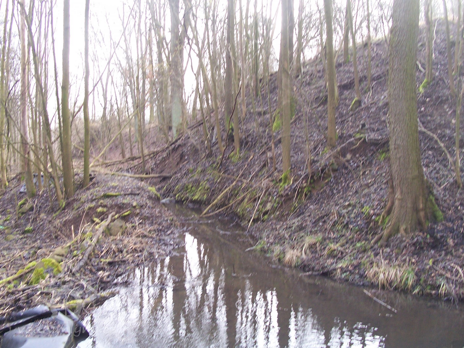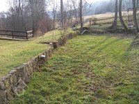Asi 300 m nad mlýnem se odděluje od potoka náhon, který zásobuje vodou velkou nádrž - rybník. Nádrž je rozdělena cestou na dvě části. Část dál od mlýna je dosud naplněna vodou a využívána k chovu ryb. Patří k vedlejšímu domu. Část nad mlýnem je vyschlá. Náhon je tedy částečně naplněn vodou.