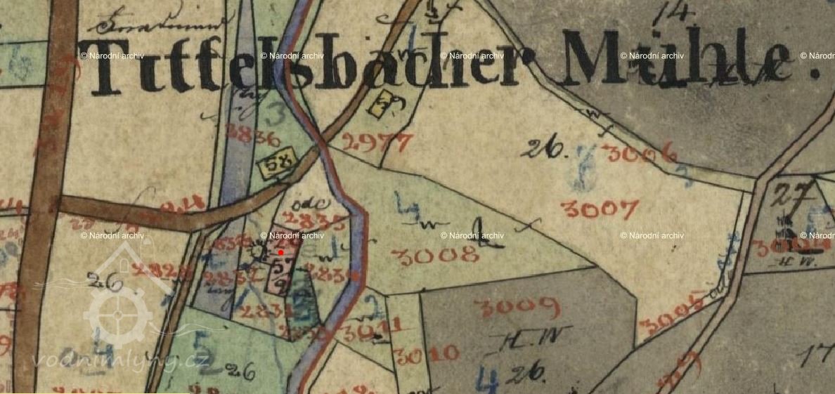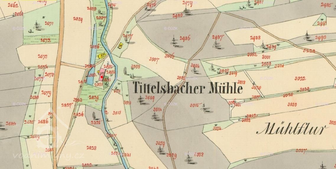PopisV roce 1930 zde bylo 1 Peltonovo kolo na svrchní vodu, průtok 0,027 m3/s, spád 8,2m, výkon 2,2 HP