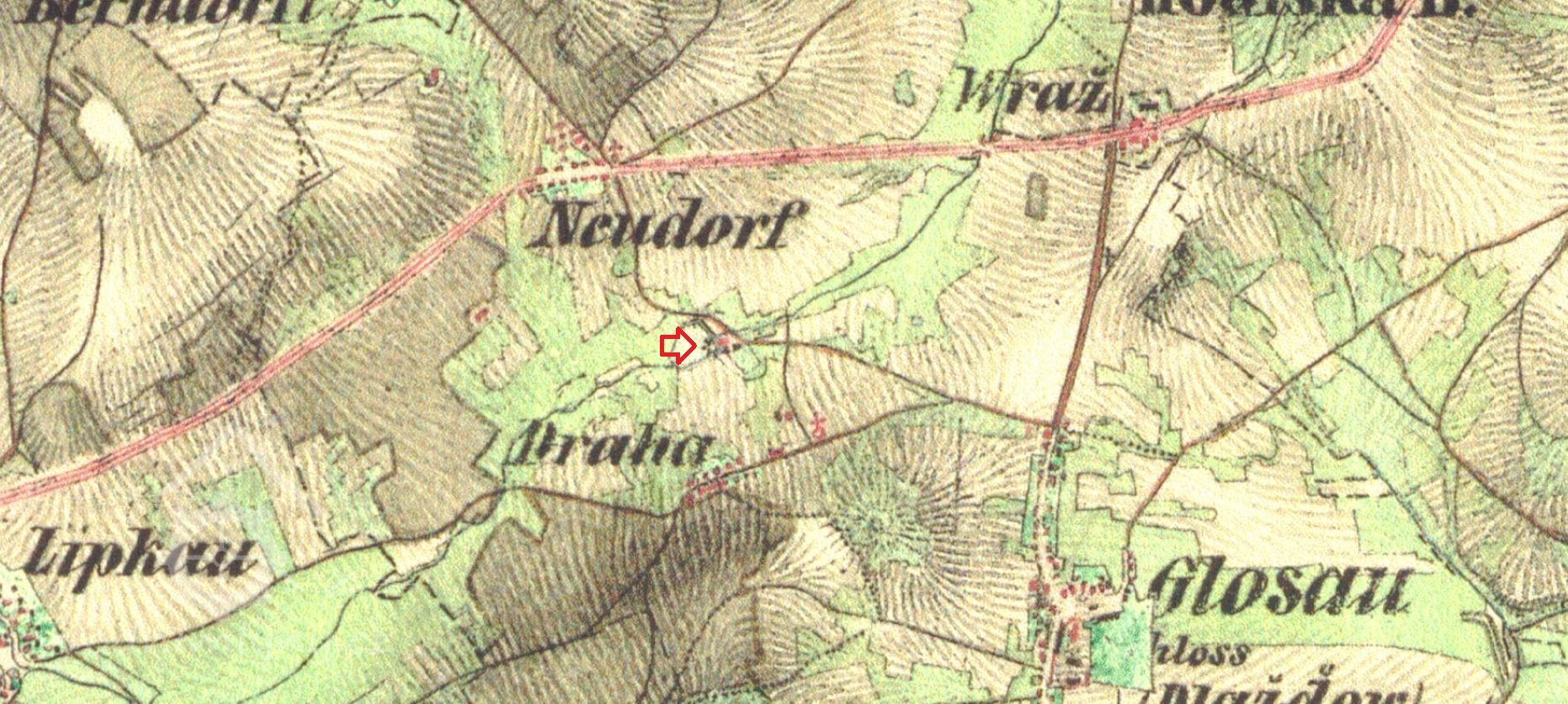 Pravděpodobně je zobrazen již na I. vojenském mapování – josefském 1764-1768 a 1780-1783.
