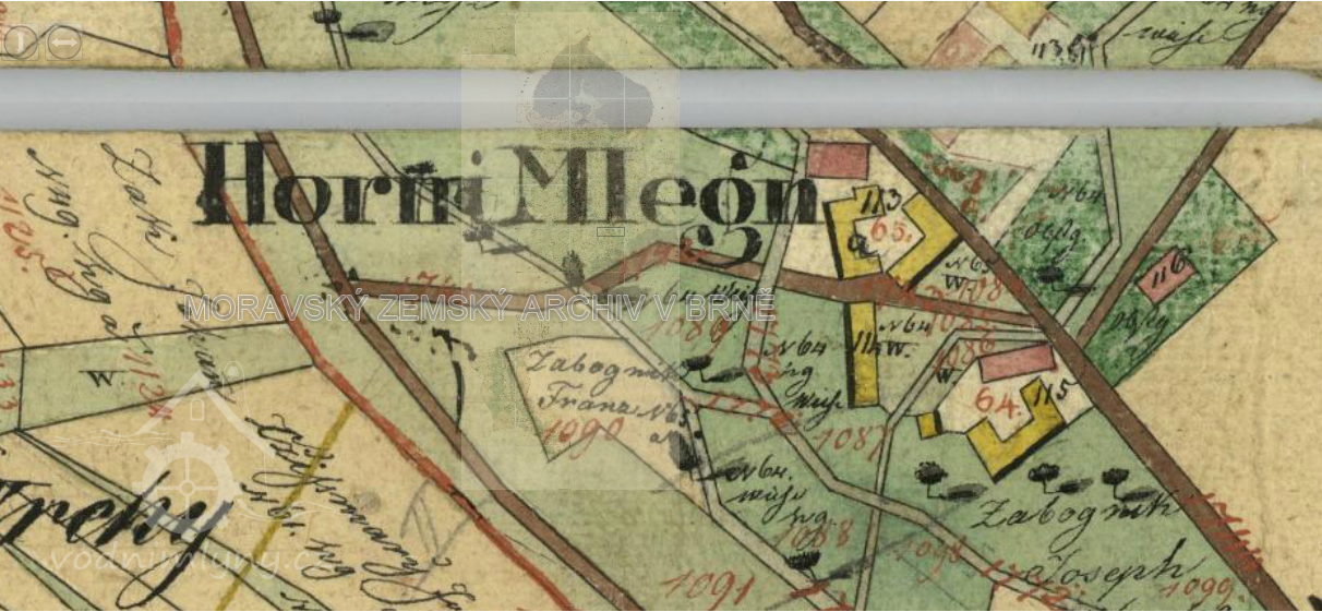 Mlýn, ke kterému vedla cesta osázená olšemi, byl v roce 1774 prošacován za 400 rýnských zlatých6. Podle trhové smlouvy byl JOSEF ZÁBOJNÍK povinen vyplatit své sourozence. Sestře Rosině odvedl 120 zl., druhá sestra Anna již byla po smrti, tedy podíl náležel jejím dětem Anně a Marianě, každé 50 zl. Svému stejnojmennému zeti, „který mnohý léta při mlejně pracoval a otci pomáhal“ Josef vyčlenil 80 zl. Do sirotčí kasy panství uherskobrodského byl povinen každoročně odvádět 33 zl., splatných ke svátku sv. Václava.K mlýnu tehdy přináleželi také 2 koně, 2 tažení voli, 8 dojných krav, 1 jalovice, 2 vozy, 2 pluhy a 3 brány.