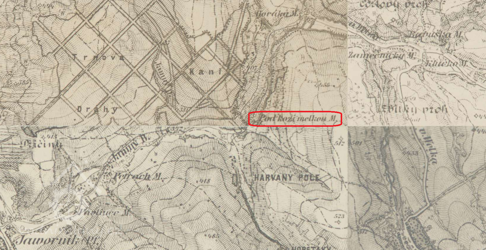 Mlýn s podivným jménem na samotě na jižním výběžku suchovského katastru.