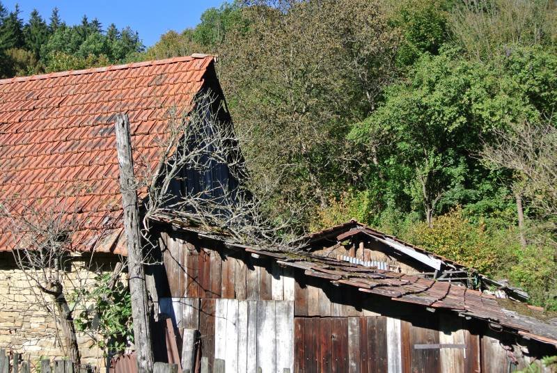 Materiál: vepřovice, cihly, dřevo; krytina: falcovka, eternit