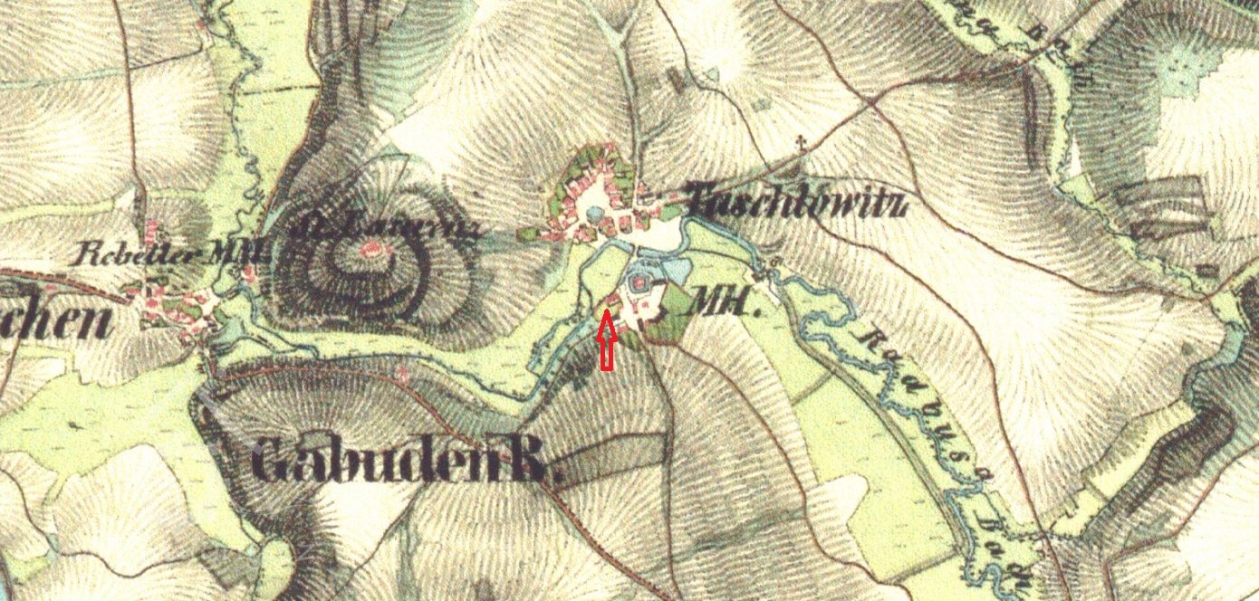 K mlýnu patřil dům č..37 tzv. Mühlhäusl, v roce 1936 byl zbořen.