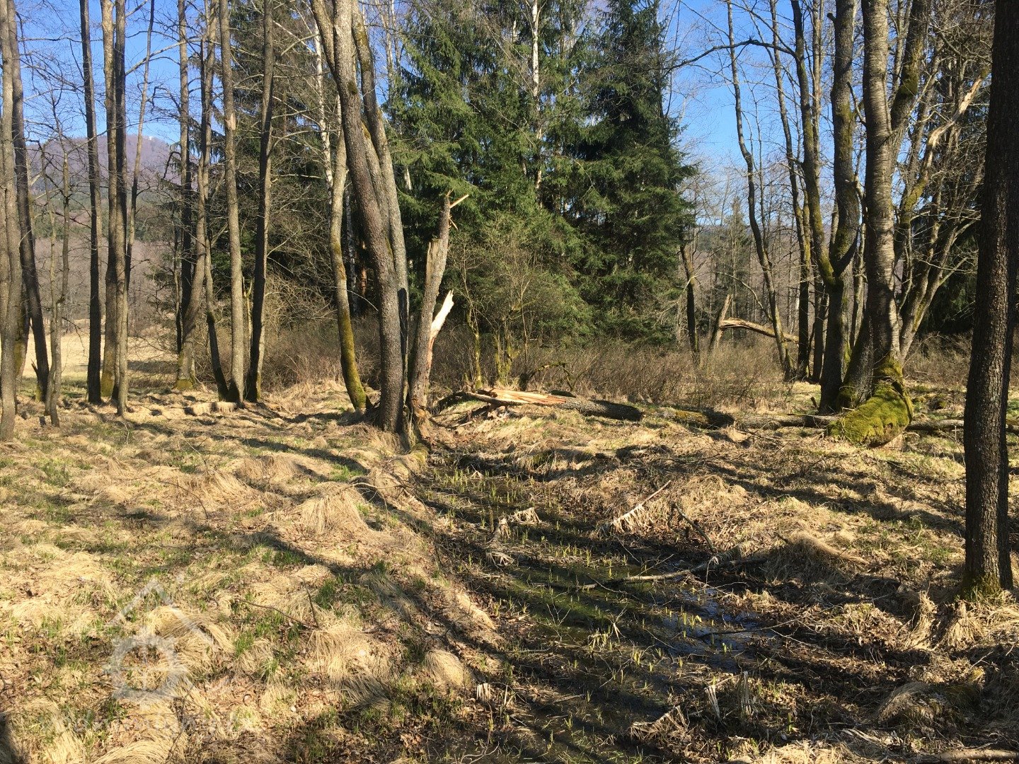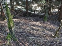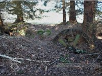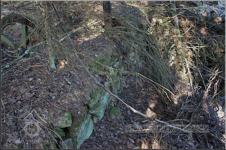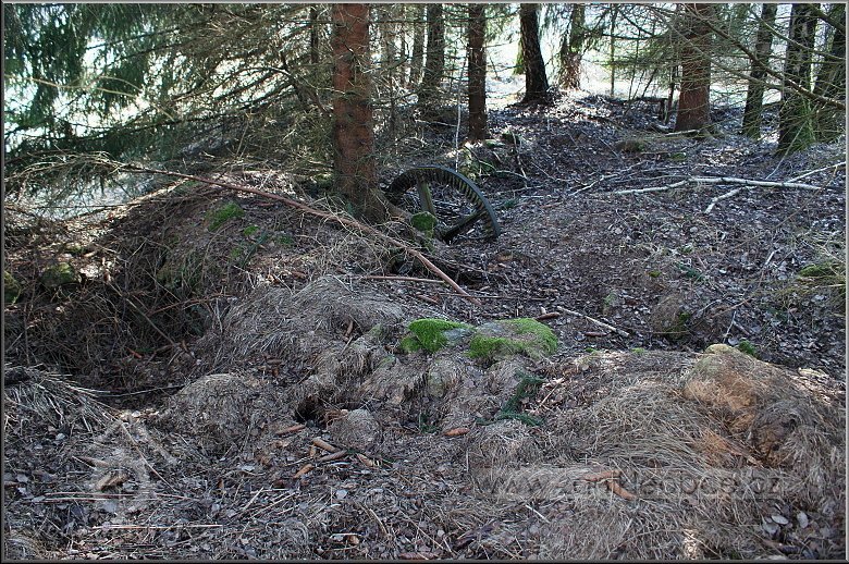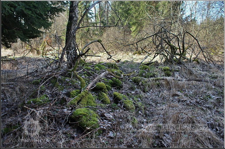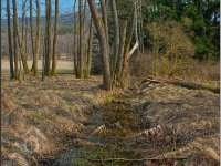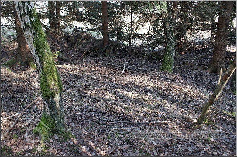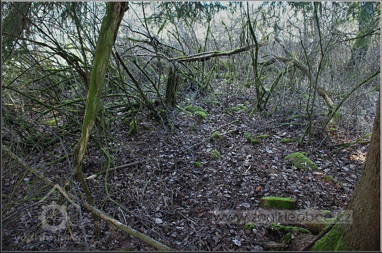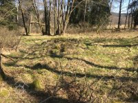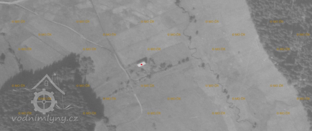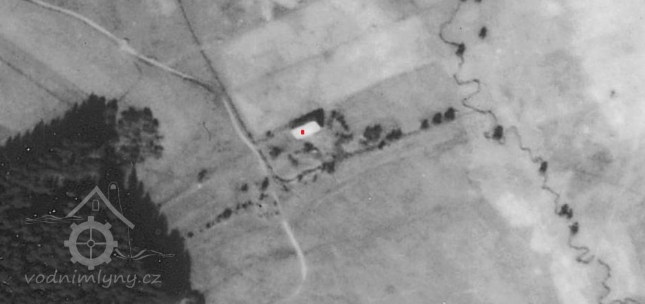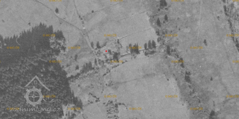 2020-zřetelný je dlouhý náhon ke mlýnu, dnes bez vody. V bažinaté lokalitě sotva dohledatelné zbytky mlýna.