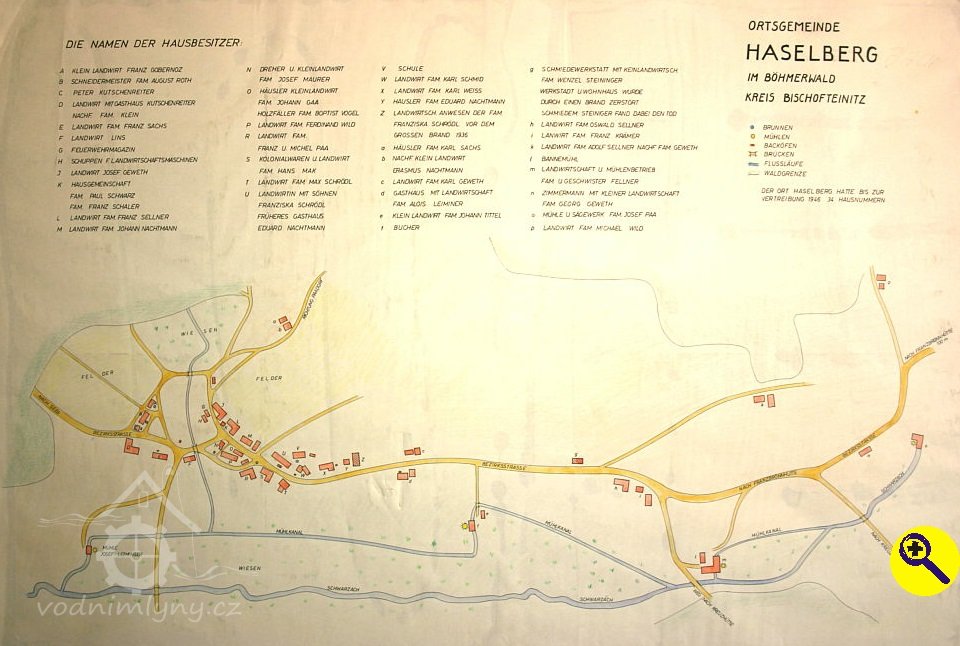 Seznam vodních děl Republiky československé 1930 - Čerchovka – Haselberg 25 - Josef Leiminer, mlýn, 1 kolo na svrchní vodu, 0,092-4,3-3,4.