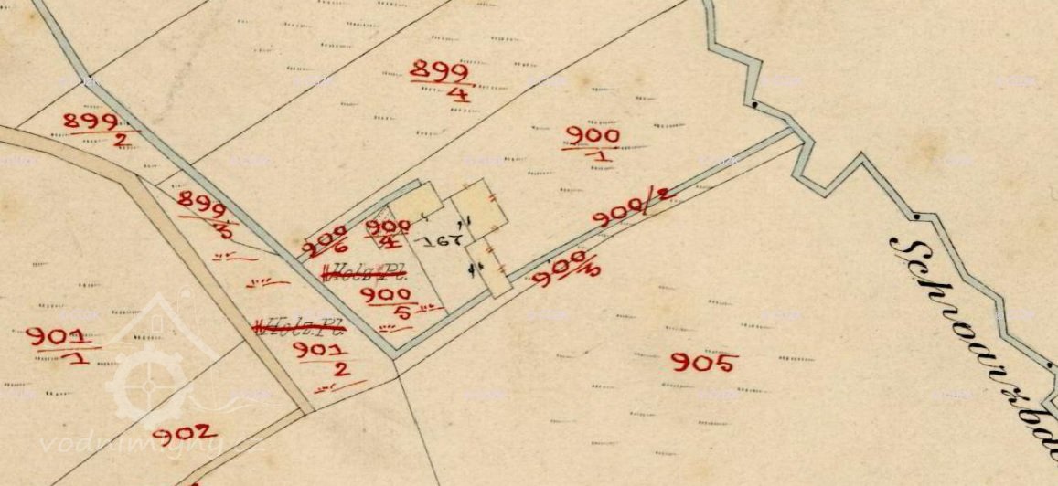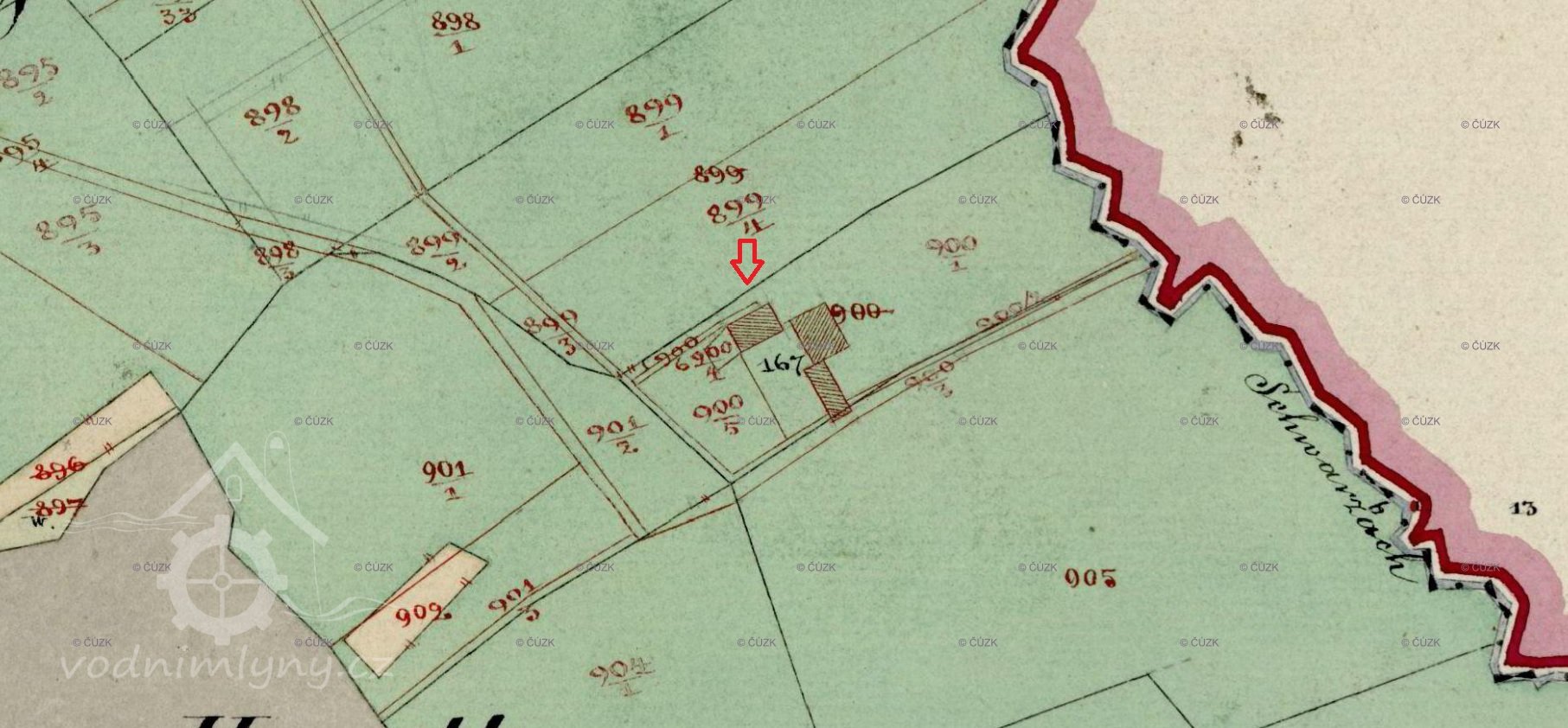 Není na skice ani otisku stabilního katastru z roku 1838, ale je jako doplnění na originální mapě, vznikl tedy někdy okolo roku 1838. Jedná se o tři obdélníkové, zřejmě nespalné budovy.