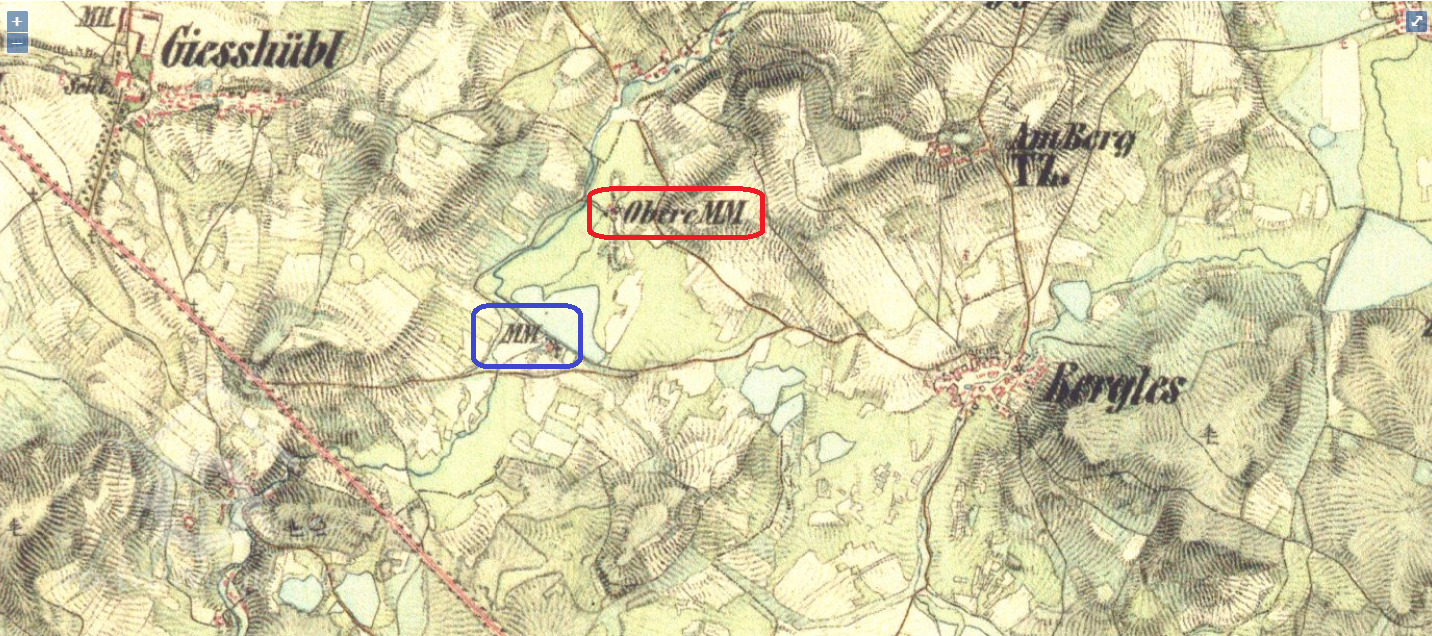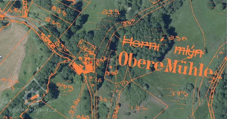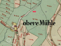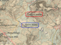 Horní mlýn je prvně zachycen na mapě 1. vojenského josefského mapování z let 1764-1768.